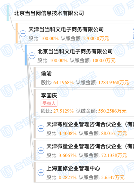 笔者通过“启信宝”查询了北京当当网信息技术有限公司的股权结构,结合上图,梳理如下: