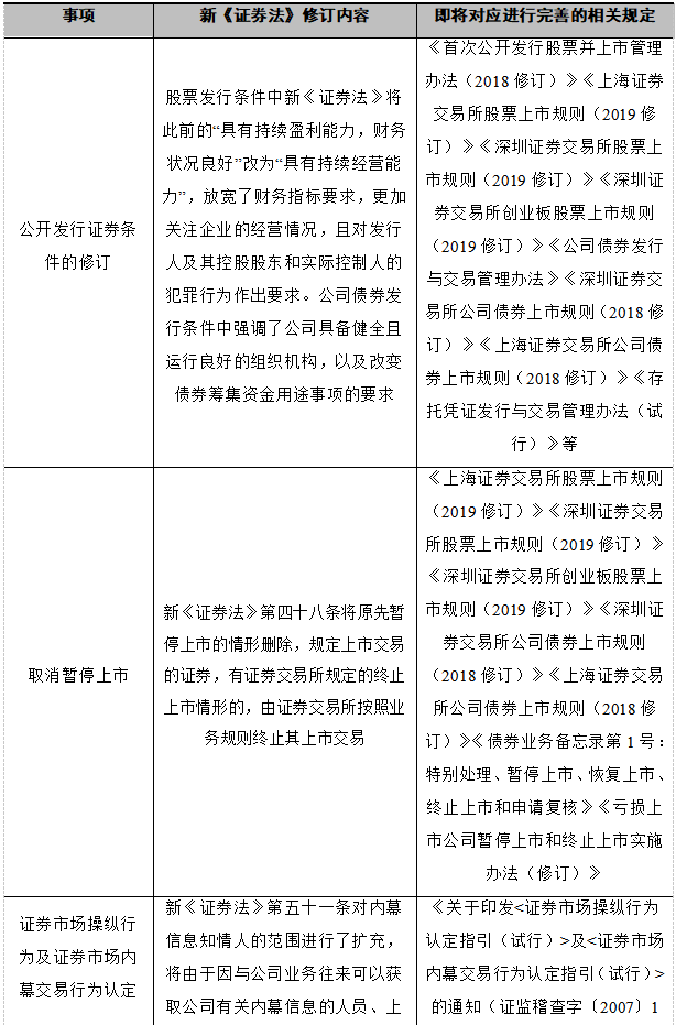再谈新《证券法》相关修订内容对应规则的动向