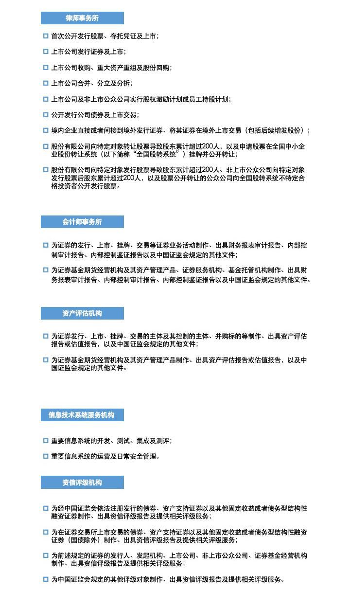 为落实新《证券法》关于证券服务机构从事证券服务业务向国务院证券监督管理机构备案的新要求,证监会在广泛听取各方意见的基础上,于2020年2月29日发布了《证券服务机构从事证券服务业务备案管理规定(征求意见稿)》(以下简称《备案规定》)。