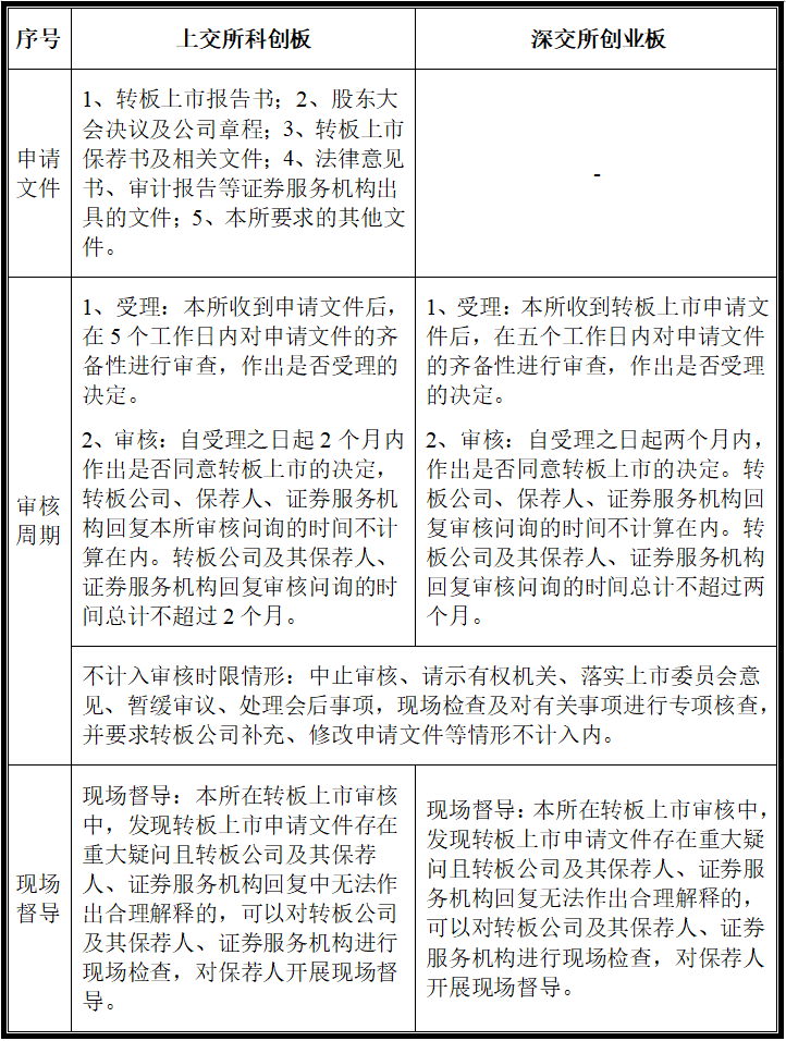 在交易所发布的《上交所转板上市办法》、《深交所转板上市办法》中,将审核周期从“3个月+3个月”缩短至“2个月+2个月”,加快了转板公司的上市进度,有利于推动公司转板的积极性。