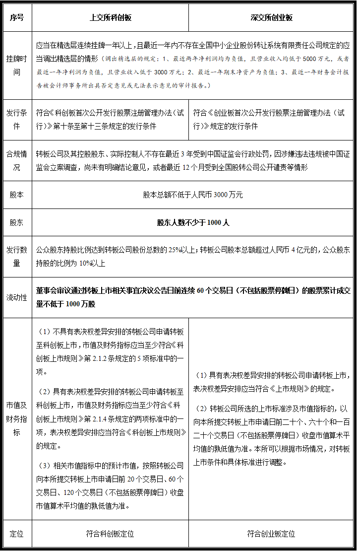 本次发布的《上交所转板上市办法》、《深交所转板上市办法》基本按照证监会在《转板上市指导意见》中提出的主要制度安排的要求并结合交易所自身的规则草拟了具体规定,主要的制度安排如下: