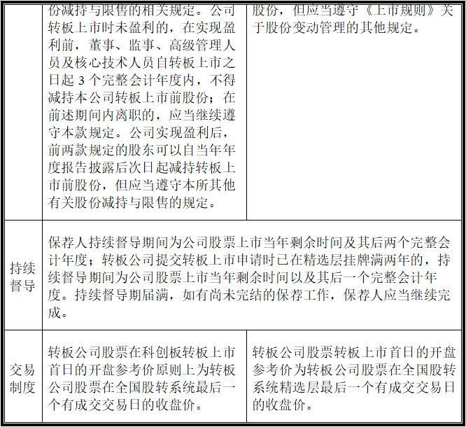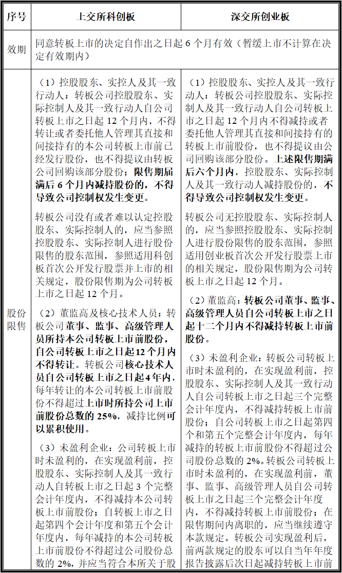 交易所在综合考虑了三板挂牌期间的股份限售时间后,缩短了转板公司在交易所上市后控股股东、实控人及董监高的锁定期,但是也在缩短的同时要求在6个月内减持不得导致公司控制权的变动,这也有利于提升新三板精选层公司转板的积极性和经营的稳定性。